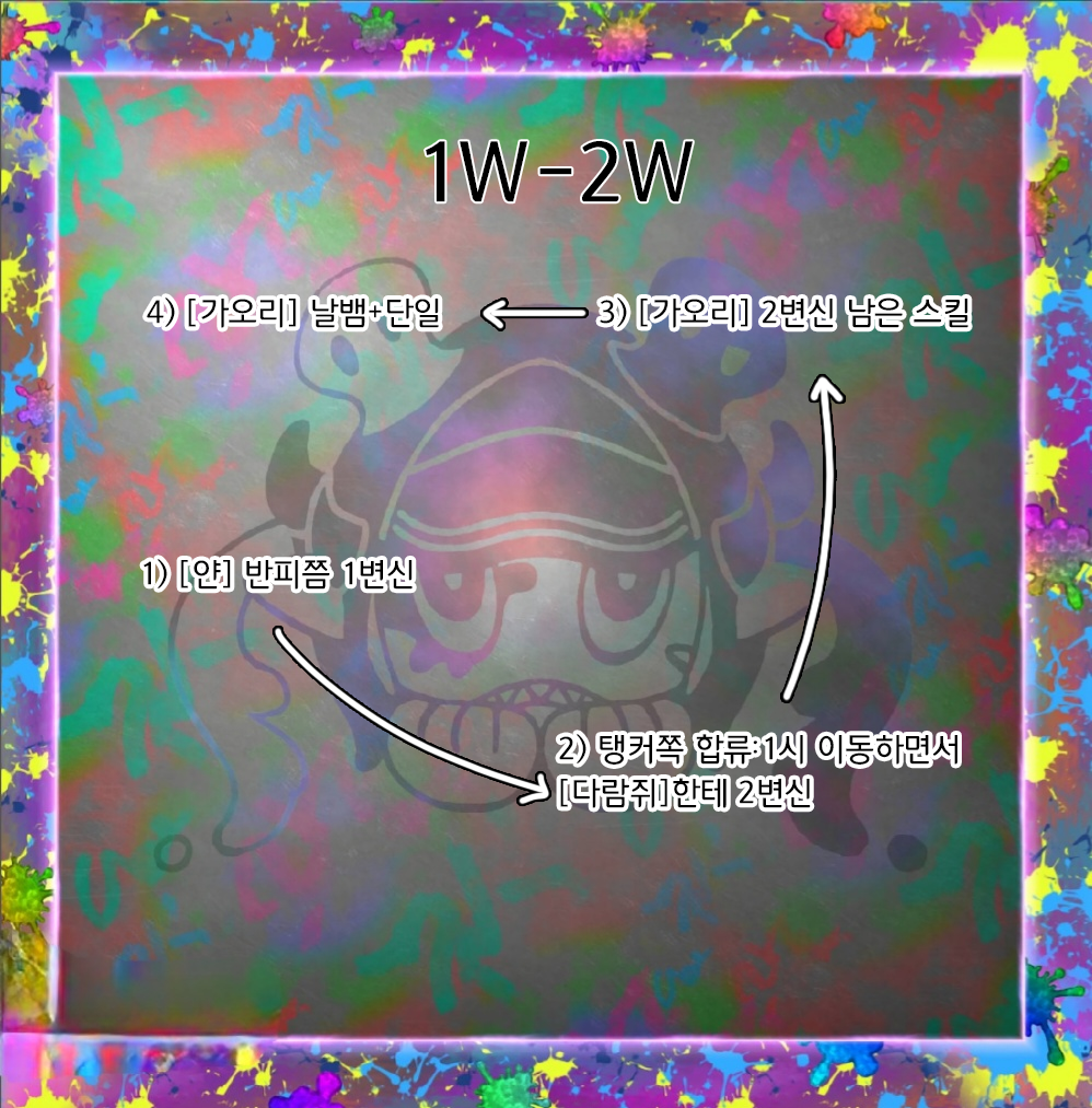 2개수일촉은 고랑 탑 처리하면서 보스 정면을 찾아 노려보고 있다가 돌아가는 것을 확인한 후 보스 정면이 1번으로 이동할 수 있는 곳이라면 무조건 정면으로 이동한다. 1칸으로 정면을 갈 수 없다면 내 섬 또는 정면과 먼 옆 섬이 안전지대임을 생각하면 쉽다.